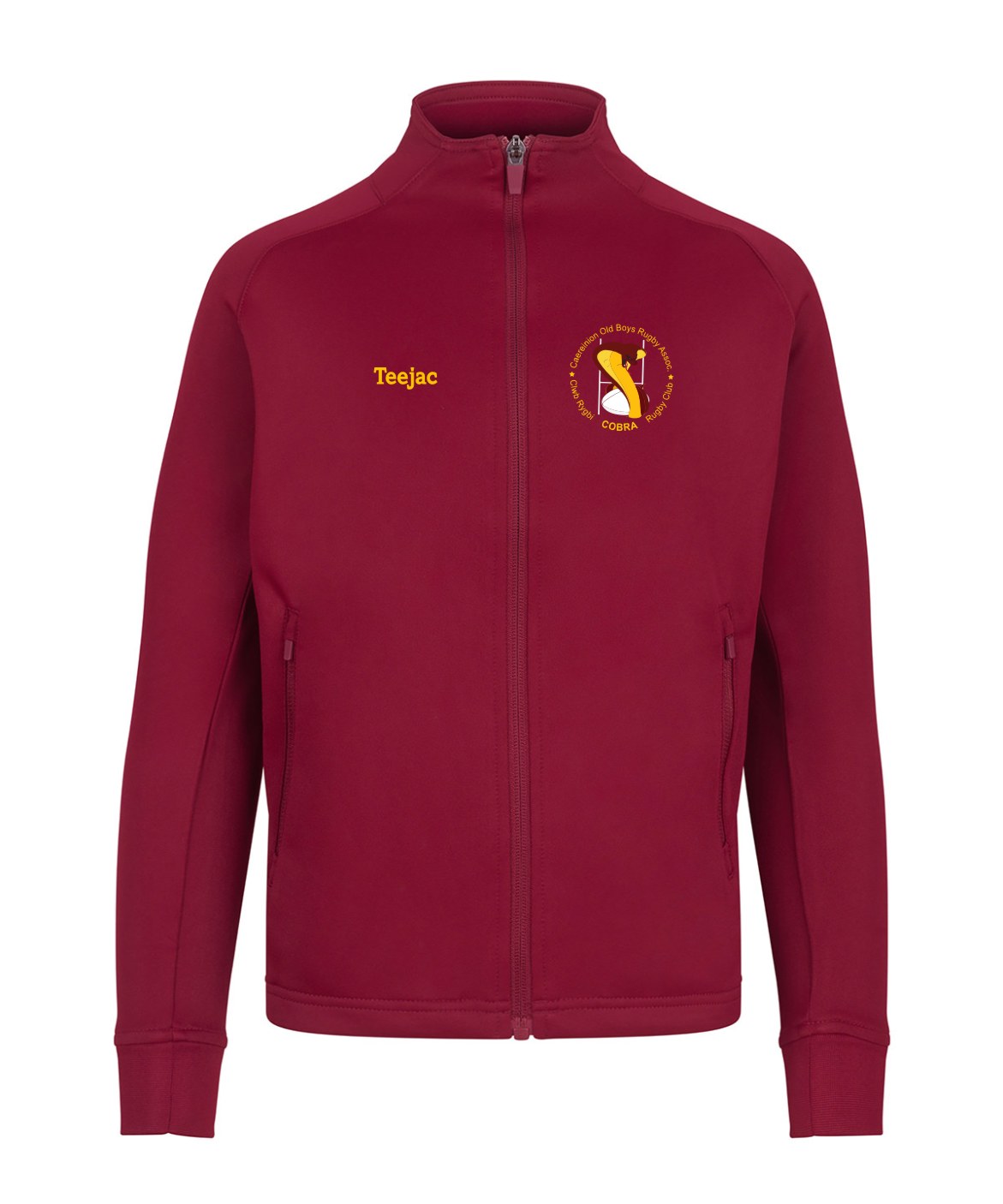 Tracksuit top with contrast colour panels on outer sleeve. Contrast colour centre front zip. Zipped side pockets. Funnel neck and 1×1 ribbed cuffs. Semi-automatic lock zip sliders on all zips.